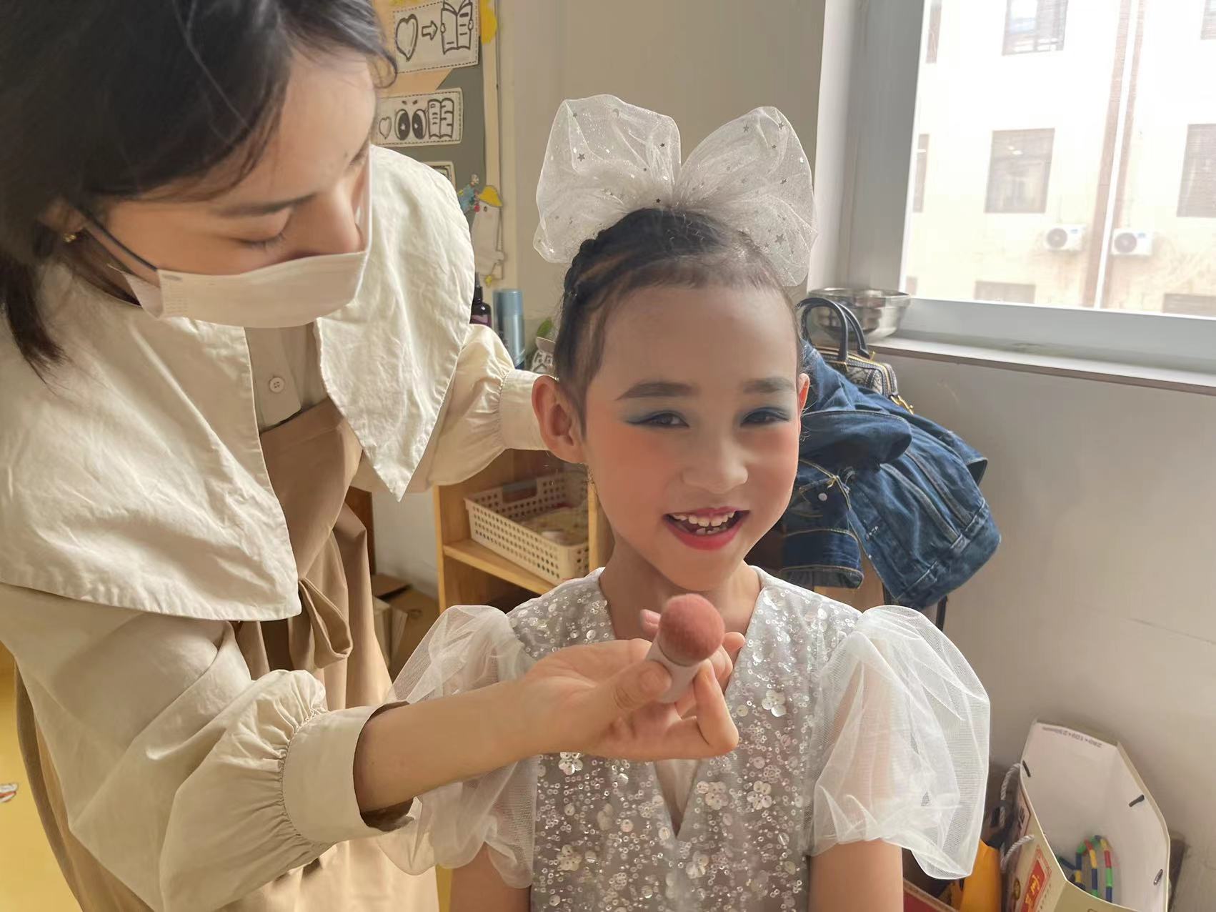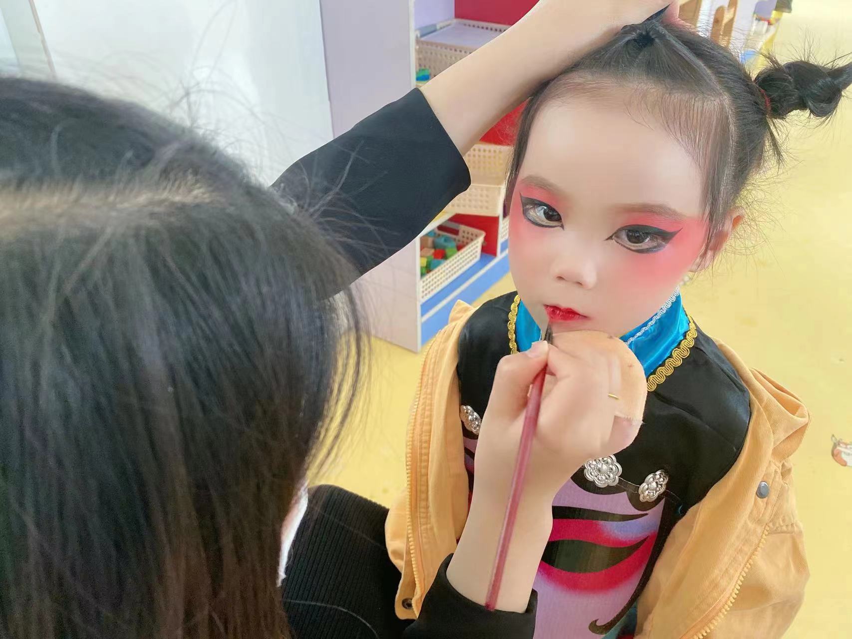 画上俏皮可爱的妆容,穿上气场强大的演出华服,孩子们要用最好的精神面貌登上闪亮的舞台,展示自己的风采。