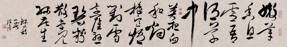 瑞涛和许多书法家一样,在为政之余深研书法之道,以业余之身,成就专业之绩。其书法以行草见长,兼修各体。经年不辍,不拘一格,不囿成法。瑞涛胸襟开阔、气度豪放,故其书以气、势见长,风格蕴藉秀雅、恣肆豪迈,有二王之遗韵、颜鲁公之风骨。欣赏其书作,满纸散发着浓郁的文人气和书卷气,深见学养于其间。见书如见斯人,中正儒雅,有君子之态。