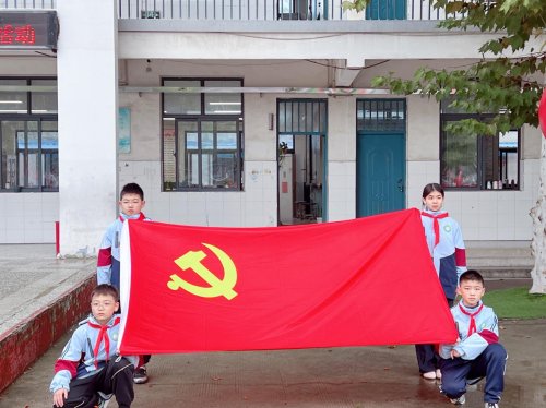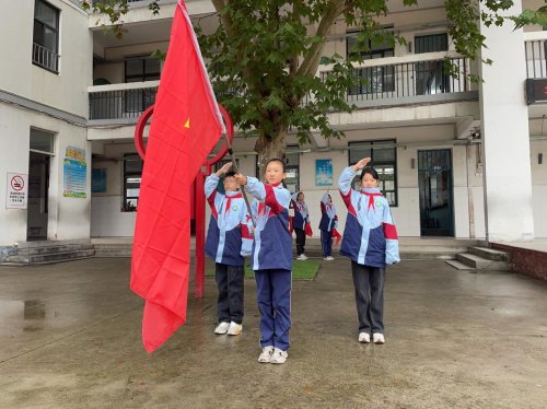 伴随着雄壮的《义勇军进行曲》,五星红旗缓缓升起,全体师生脱帽肃立、高唱国歌;国歌毕,《中国少年先锋队队歌》奏响,少先队员们昂首挺胸,用嘹亮的歌声传递出对少先队组织的热爱。