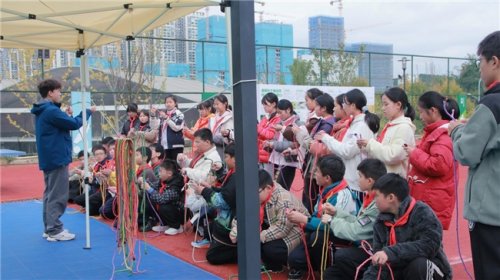在乌当区中央民族大学附属贵阳实验小学的活动现场,同学们围着“水质净化”实验台兴致勃勃,亲眼见证浑浊的水通过过滤、沉淀等步骤变得清澈;观山湖远大中学的科技体验课上,机器人演示与VR虚拟生态场景让学生们沉浸式感受科技与自然的融合;花溪改貌小学的体育健康课堂上,绳结技能训练不仅锻炼了动手能力,更让孩子们在协作中体会团队精神。