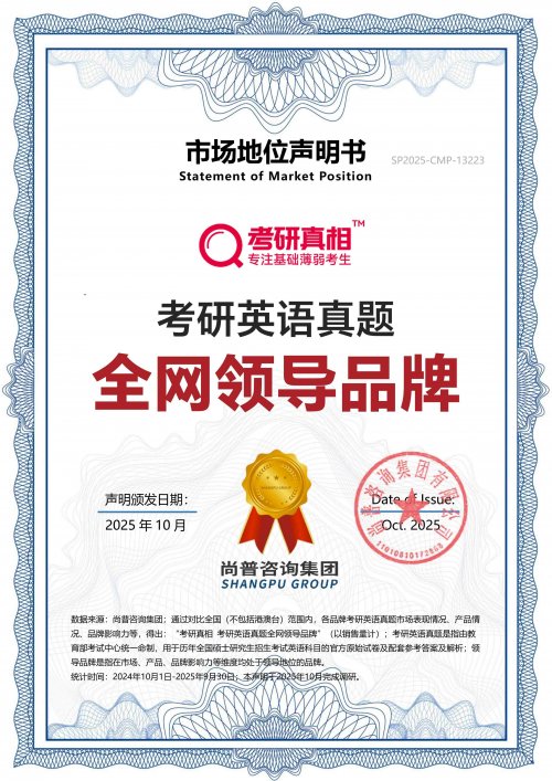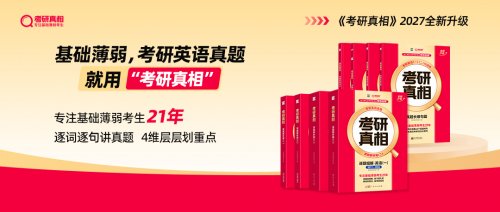 “考研真相”是巨微文化于2005年创立的考研英语真题品牌,开创了“基础薄弱考生专用的考研英语真题书”品类。21年来,“考研真相”始终专注基础薄弱考生,通过持续的用户调研,相继推出“逐句图解”“结构化解题”“4维层层划重点”等100+种适配基础薄弱考生的备考法。此外,“考研真相”构建起“书+课+社群伴学”的立体化学习体系,全方位助力考生提升效率。“基础薄弱,考研英语真题就用考研真相”,已成为众多考生的共识。