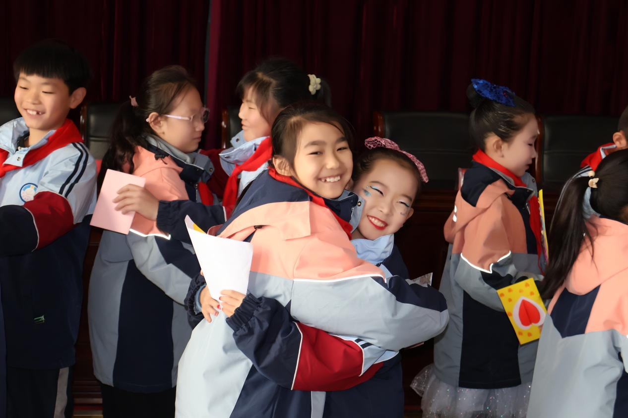 互赠礼物环节,结对班级同学满心欢喜地捧出精心准备的贺卡,每一处细节都凝聚着用心。新华路校区的同学递出礼物时,脸上洋溢着真诚的笑容,眼中满是对新朋友的友好。明珠校区的同学双手接过,迫不及待地分享自己回赠的礼物,陌生感瞬间消散,纯真的友谊在这个美好的瞬间生根发芽,处处洋溢着温暖与欢乐。