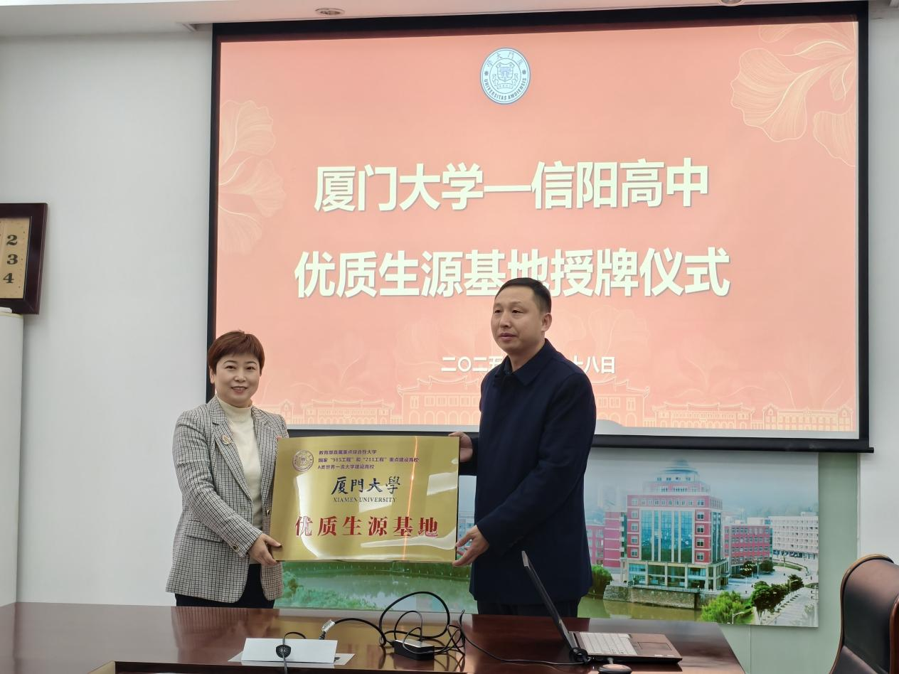 随后双方举行了厦门大学“优质生源基地”授牌仪式,李静副书记、黄洪新副校长共同为厦门大学“优质生源基地”揭牌。