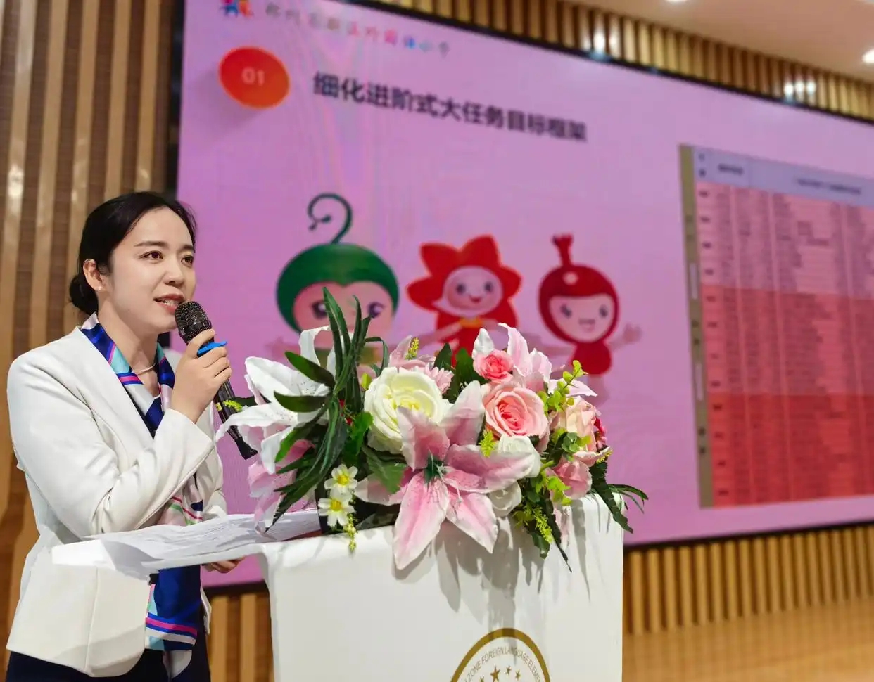 外国语小学德育副校长牛晶晶围绕论坛主题全面阐释:以“六阶大任务群”为统领,构建指向明确、学段衔接的学生进阶式大任务实践系统;以“六阶学生发展”为遵循,创构紧扣时代、灵活多样的教师进阶式大任务“全课三策”适导系统;以“六面一体”为保障,搭建资源融汇、机制协同的学校进阶式大任务护航系统。通过深度解码,让大家清晰了解“进阶式大任务德育”实践背后的逻辑脉络和创新育人价值。