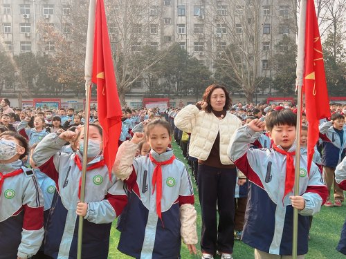 2025年12月8日上午,学校举行了庄严的主题升旗仪式。在雄壮的国歌声中,五星红旗冉冉升起。随后,武奕彤老师进行了题为《铭记历史,吾辈自强》的国旗下讲话,号召同学们不忘国耻,努力学习,为中华民族伟大复兴而奋斗。