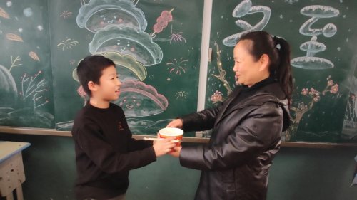 待一盘盘热气腾腾的饺子出锅后,孩子们捧着亲手包制的饺子,第一时间端到老师面前,稚嫩的脸庞上满是真诚,一声声“老师您辛苦了”温暖了整个校园;另一旁,相机定格下孩子们为家长端上饺子的温馨瞬间,小小的饺子承载着对父母的感恩与爱意。