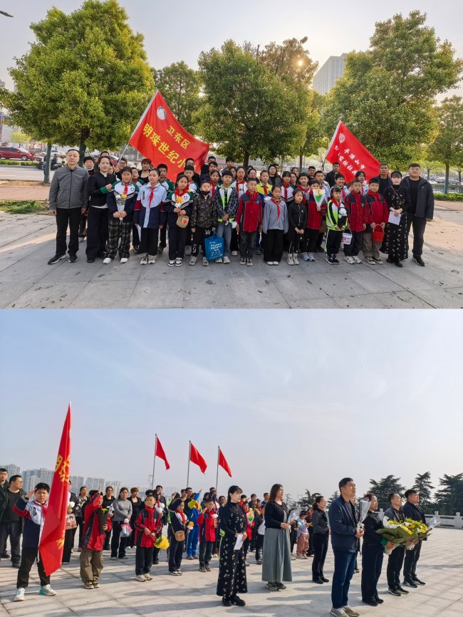 卫东区家校社共育协会会长、中原教育周刊平顶山新闻中心主任陶朝军强调,此次活动是家校社三方协同共育的生动实践,希望少年儿童能以英烈为榜样,在徒步的坚持与祭扫的感悟中汲取信仰力量,让红色血脉在代代相传中生生不息。明珠世纪小学党支部书记、校长许晓慧表示,这场“行走的爱国课”打破了传统课堂的边界,以沉浸式的体验让爱国主义教育走出课本、落地生根,变得更有温度、更具实效。