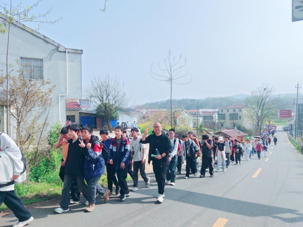 三月的豫南大别山,东风拂面,春意盎然。3月27日,新县光彩实验学校八年级500名师生整齐列队,旌旗猎猎,踏上了一段意义非凡的征程——往返郑维山故里新县泗店乡将军石,全程二十五公里。这不仅是体能的跋涉,更是一场精神的洗礼。“二十几公里的路途,累却充实。参观郑维山故里时,我真切感受到了先辈的不易。”学生邹睿归来时的话语,道出了五百名学子的共同心声:“拥有健康的身体和坚韧的毅力,才能更专注地投入学习,才不负青春韶华。”