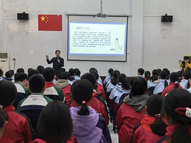 活动中,张坤鹏老师为全体师生带来了一场内容详实、生动深刻的三苏文化主题讲座。作为《寻迹东坡》栏目的核心主创,张坤鹏老师以亲身探访的所见所闻、详实的历史史料,为同学们系统讲述了苏东坡的人生轨迹。
