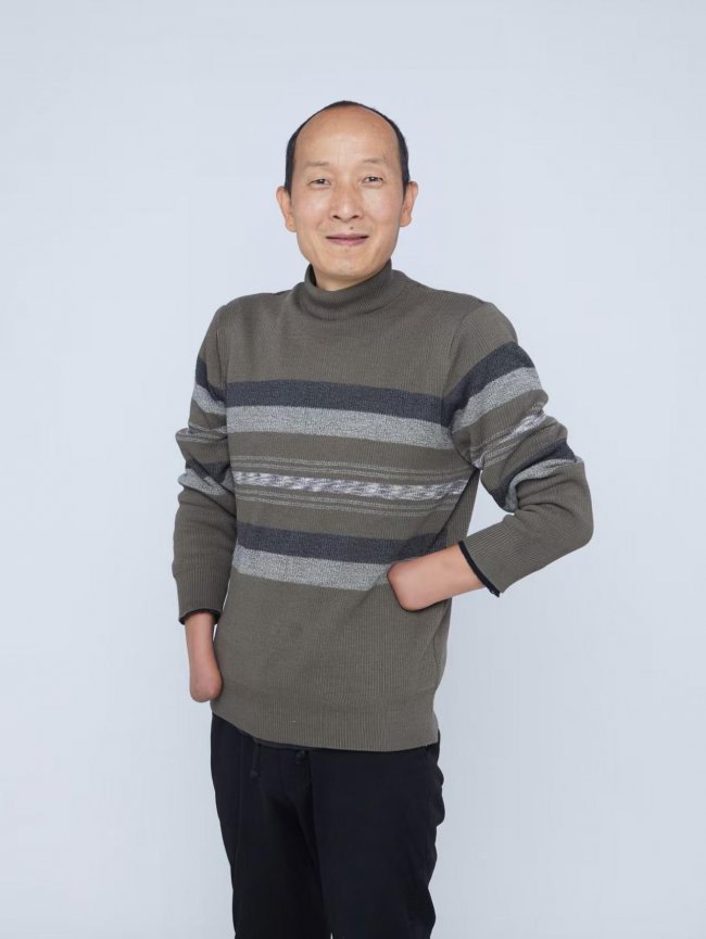 郑国旭,卫东区家校社共育协会理事,平顶山市书法家协会会员,幸福人生公益团队骨干。2012年因意外失去双手,却以惊人毅力投身创业与公益,被媒体誉为鹰城“无手鲁班”。