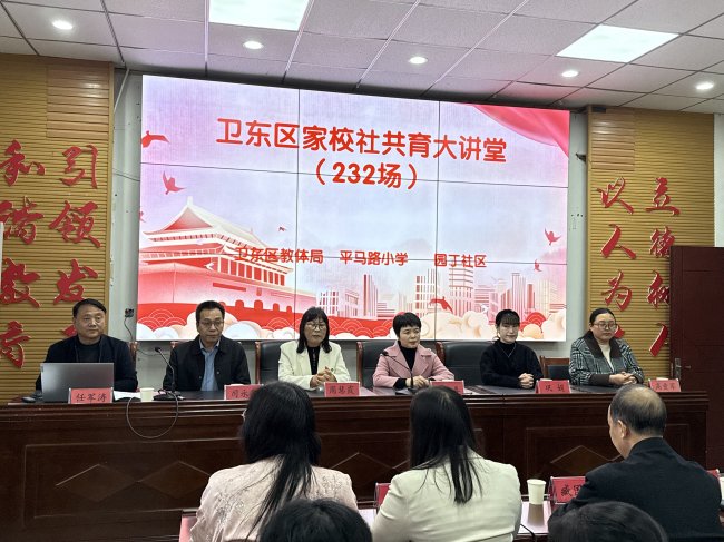 活动伊始,平马路小学党总支书记任军涛致欢迎词,向莅临现场的各位领导、专家及家长表示热烈欢迎与衷心感谢。任书记指出,教育是学校、家庭、社区同心同向的携手同行,唯有三方协同发力,才能为学生成长筑牢坚实根基。随后,卫东区教体局周慧霞主任发表讲话,强调家庭教育在立德树人中的重要地位,鼓励家长主动学习科学育儿理念,与学校密切配合,共同助力孩子健康成长。
